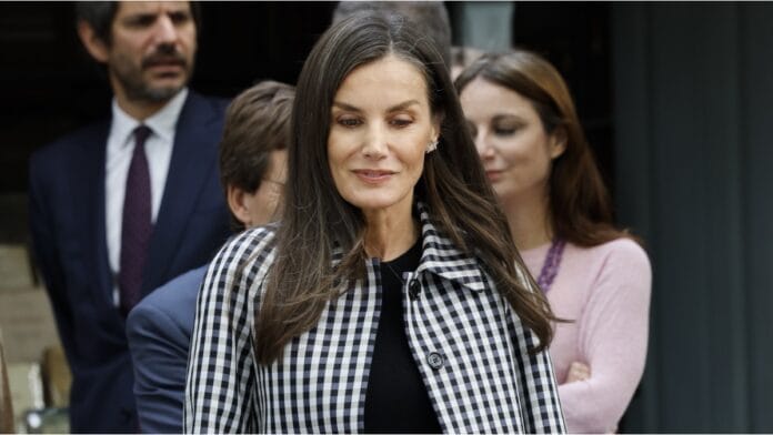 El abrigo en cuestión, con un atrevido diseño en blanco y negro, ha sido un reflejo del buen gusto de Letizia. Este tipo de estampado, conocido como vichy, se ha convertido en un ícono de la moda, asociado a un estilo clásico y atemporal. En su visita, Letizia optó por combinar este abrigo con un atuendo en su mayoría negro, un movimiento que permite que la prenda resalte aún más.